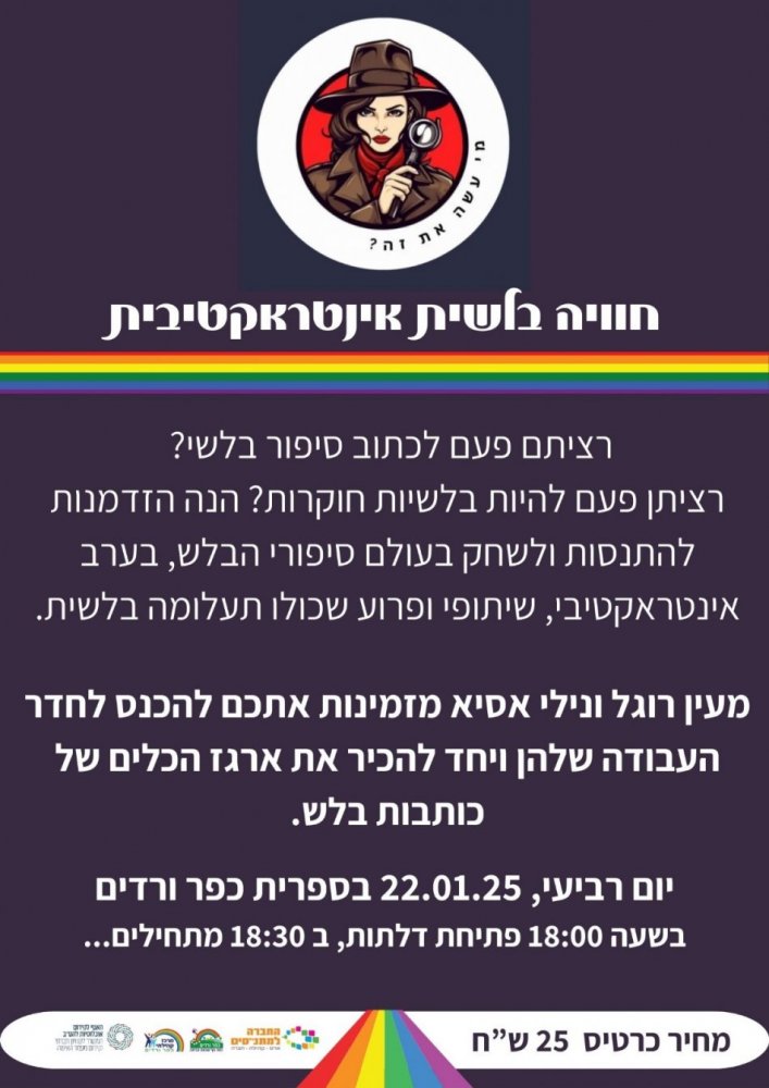 22/1/25 | יום ד' | 18:30 | חוויה בלשית אינטראקטיבית