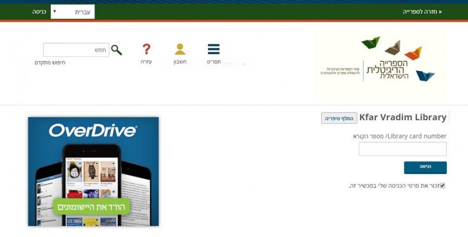השאלת ספרים דיגיטליים דרך "הספריה הדיגיטלית הישראלית".