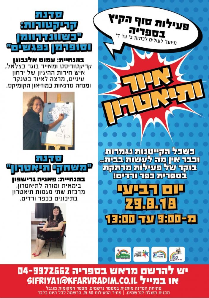 החלה הרשמה לפעילות סוף הקיץ בספריה לילדים העולים לכיתות ב-ד, יום ד' 29/8 9:00-13:00
