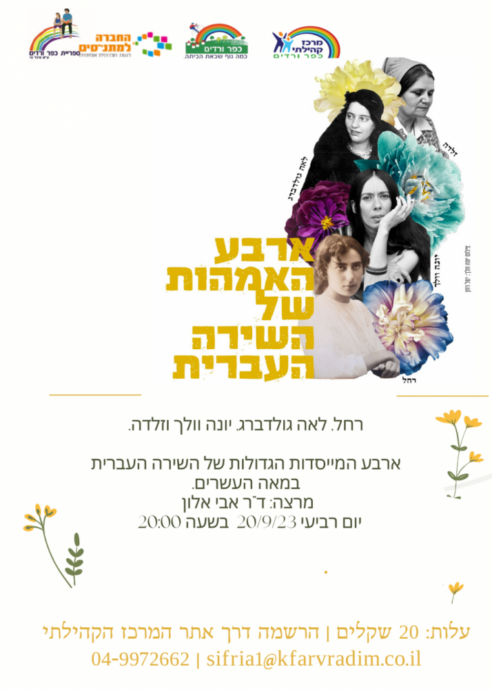 יום רביעי | 20.09.23 | 20:00 | ספריית כפר ורדים.