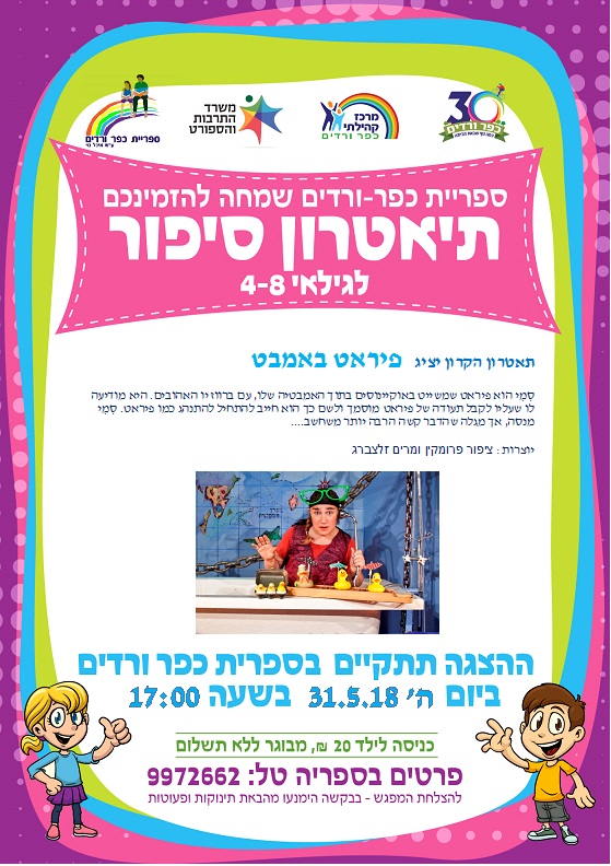 הצגה לילדים בגילאי 4-8 בספריה - יום ה' 31/5 בשעה 17:00