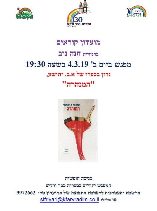 מועדון קוראים "המנהרה" בהנחיית חנה ניב - יום ב' 4/3/19 בשעה 19:30