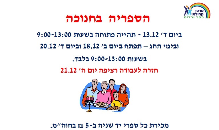 פתיחת הספריה בחג ומכירת ספרי יד שניה