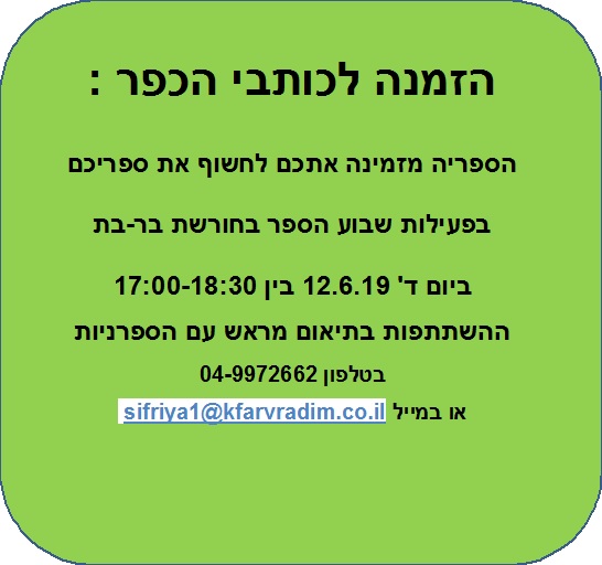 הזמנה לכותבי הכפר להשתתף בהפנינג שבוע הספר ב 12/6
