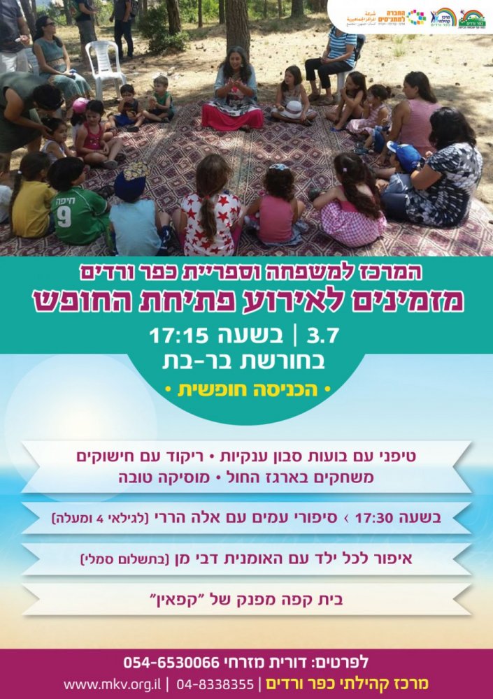 שעת סיפור ארצית במסגרת ארוע פתיחת החופש ביום ב' 3.7 בשעה 17:30 בחורשת בר-בת