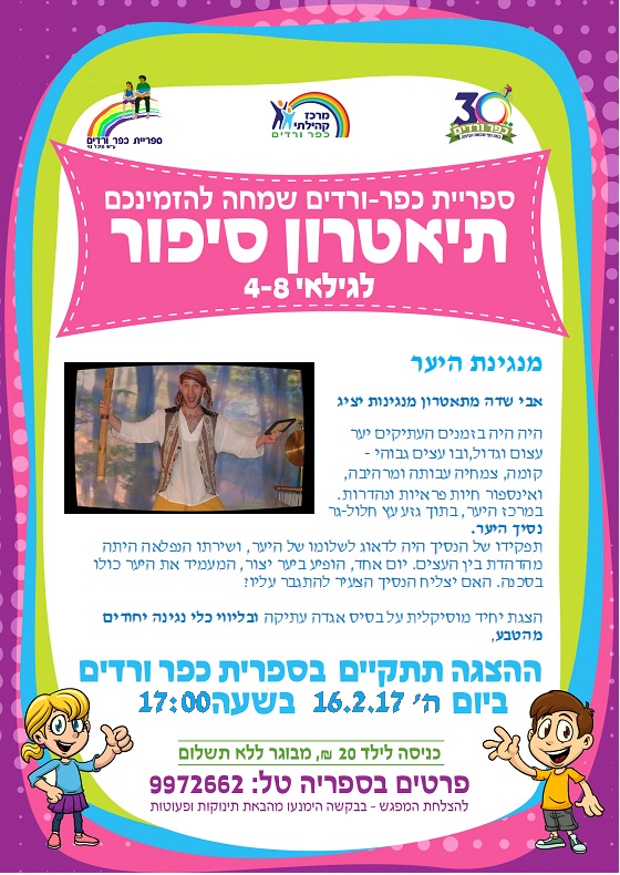 תאטרון סיפור לילדים ביום ה' 16.2 בשעה 17:00