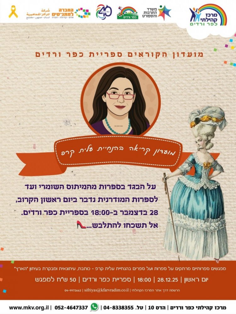 מועדון קוראים בהנחיית עלית קרפ | הערב, יום א' | 25.01 | 18:00 | ספריית כפר ורדים