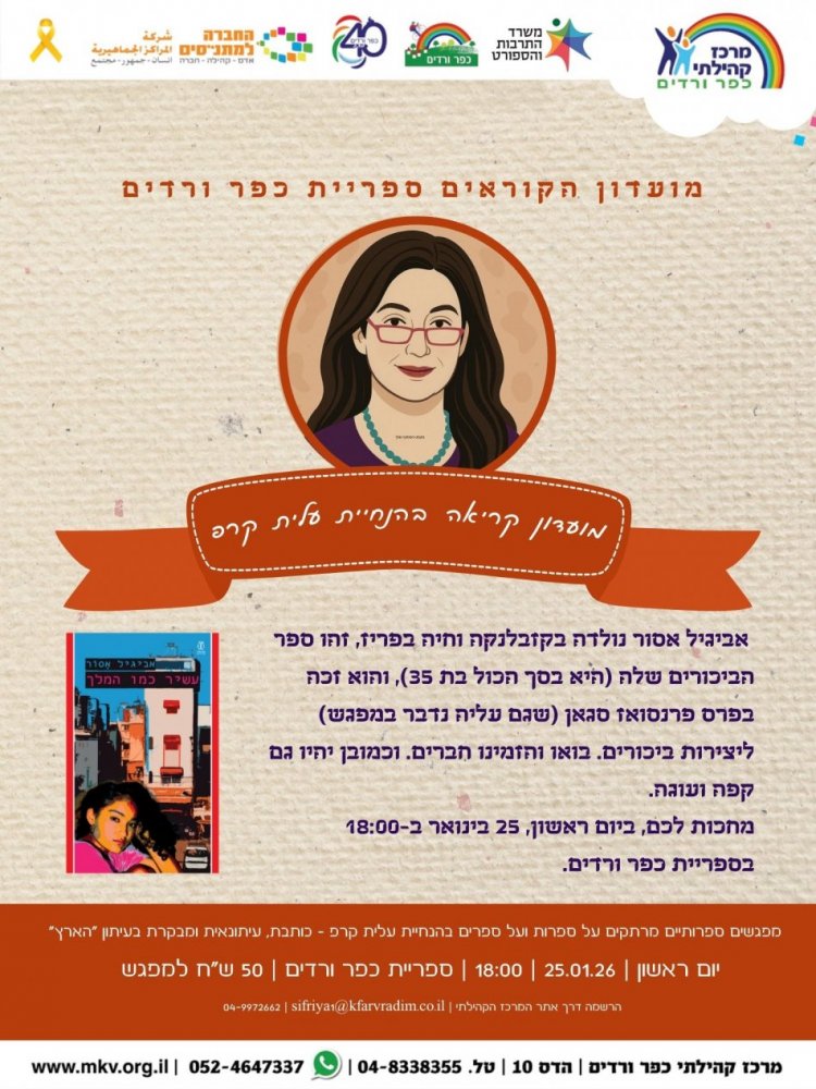 מועדון הקוראים ספריית כפר ורדים | יום א' | 26.10 | 18:00