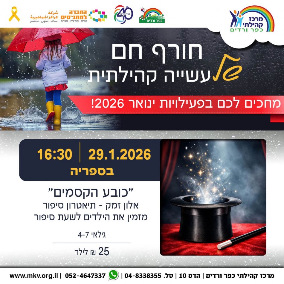 "כובע הקסמים" - תיאטרון סיפור | 29.1 | 16:30 | ספריית כפר ורדים