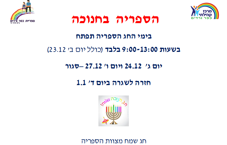 שעות הפתיחה בחג החנוכה בספריה