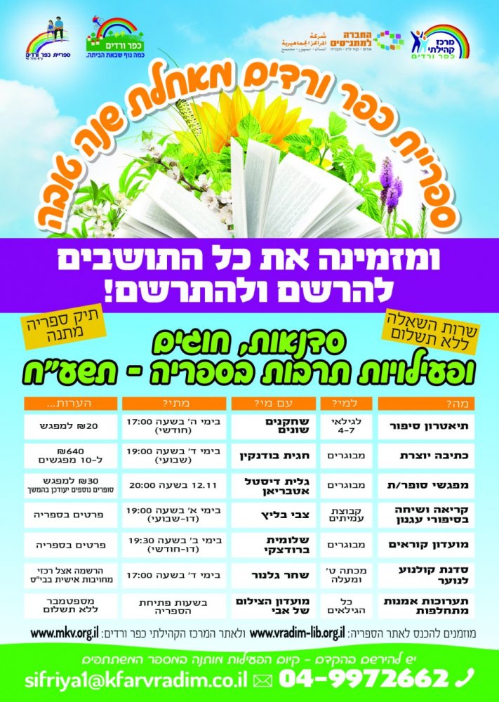 תיפתח בחוה"מ סוכות בימים א-ג 8-10/10 בין השעות 9:00-13:00