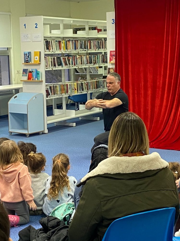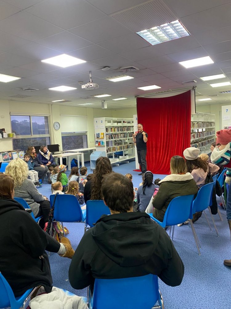 תלמידי בית ספר "קשת" שואלים ספרים בשעות הלימודים בימי הפעילות.